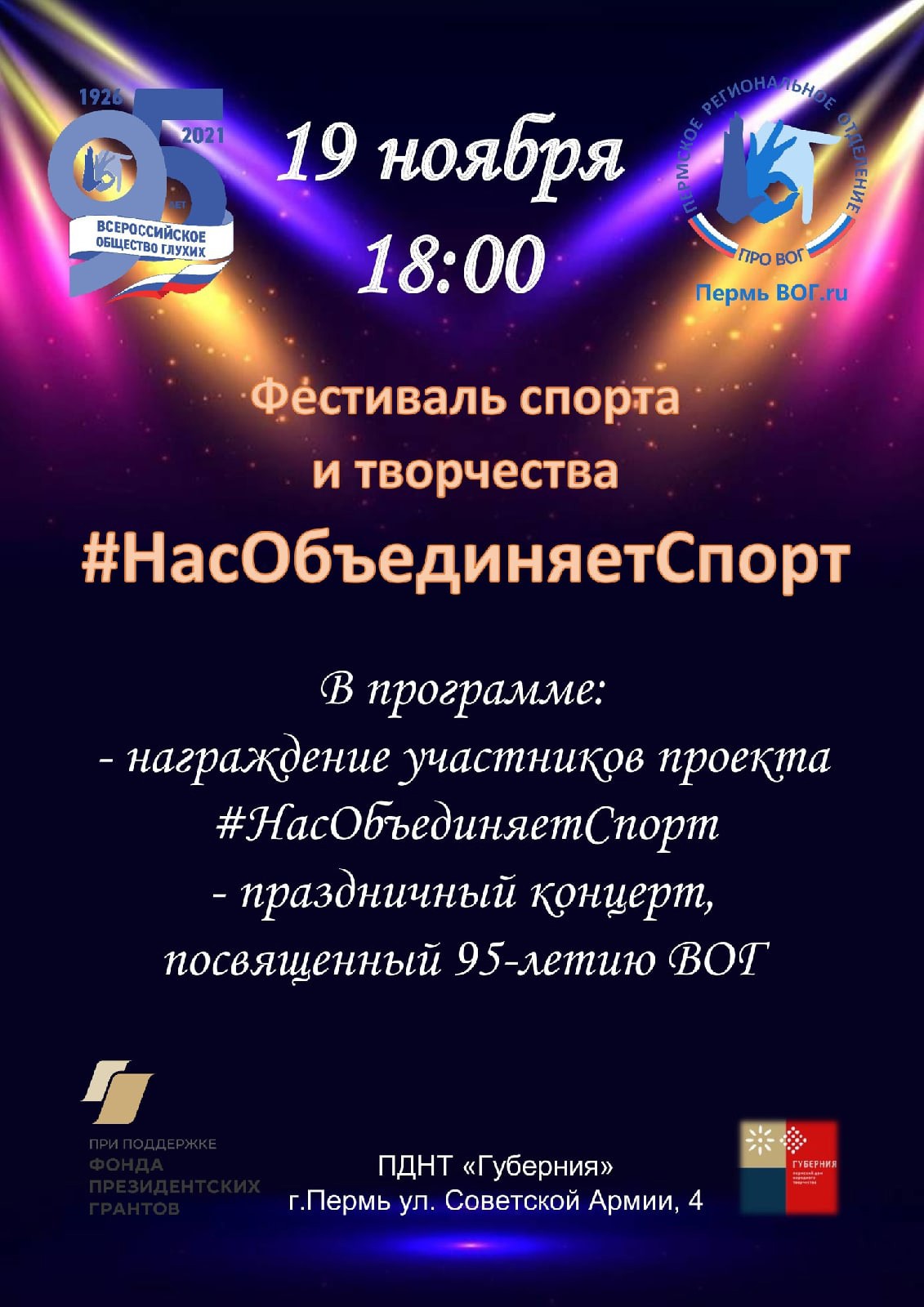Уважаемые коллеги! Всероссийское общество глухих приглашает 19 ноября в 18.00 часов на фестиваль спорта и творчества "Нас объединяет спорт",