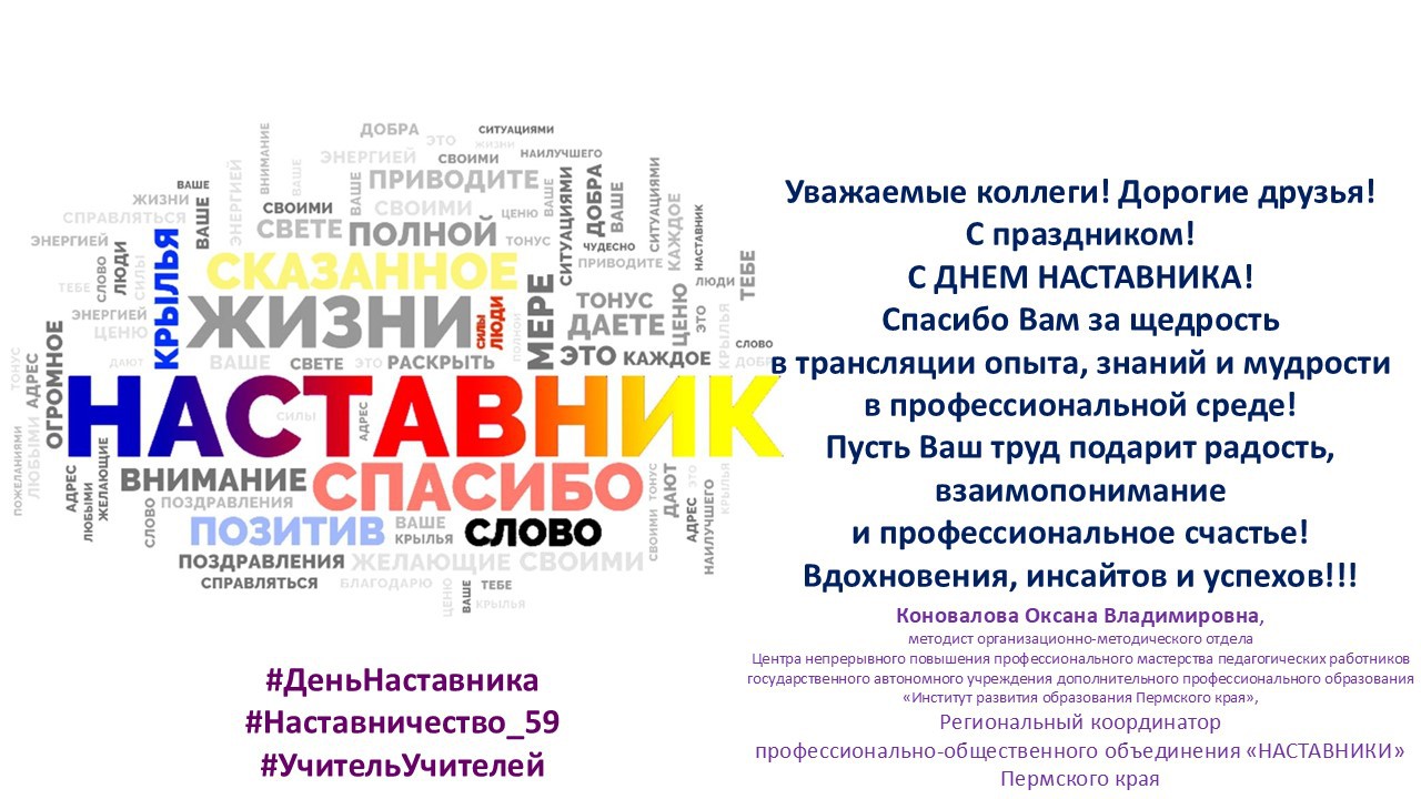 Приглашаем 01.03.2025 года педагогов-наставников из состава регионального профессионально-общественного объединения «НАСТАВНИКИ», педагогов из состава регионального отделения ВСПН, педагогов, имеющих категорию «педагог-наставник», методистов (заместителей директора) и молодых педагогов из образовательных организаций Пермского края на региональный форум «Весенний импульс: стратегии наставничества и просвещения»