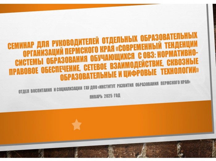 31 января 2025 года сотрудники отдела воспитания и социализации провели семинар «Современные тенденции системы образования обучающихся с ОВЗ: нормативно-правовое обеспечение, сетевое взаимодействие, сквозные образовательные и цифровые технологии» (далее – Семинар).